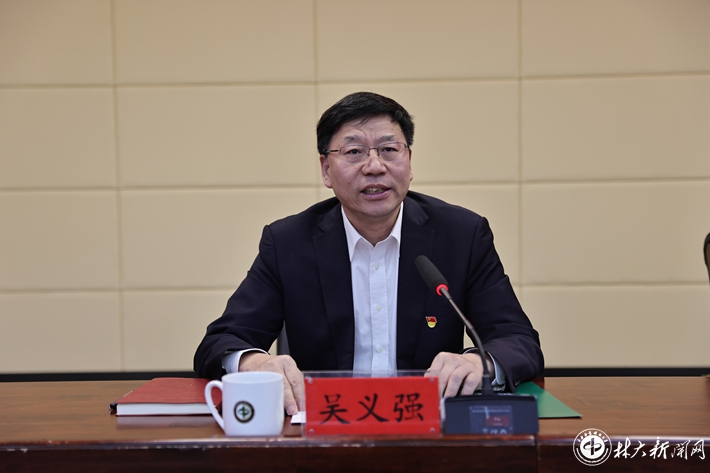 ▲中国工程院院士、校党委书记吴义强主持会议并讲话
